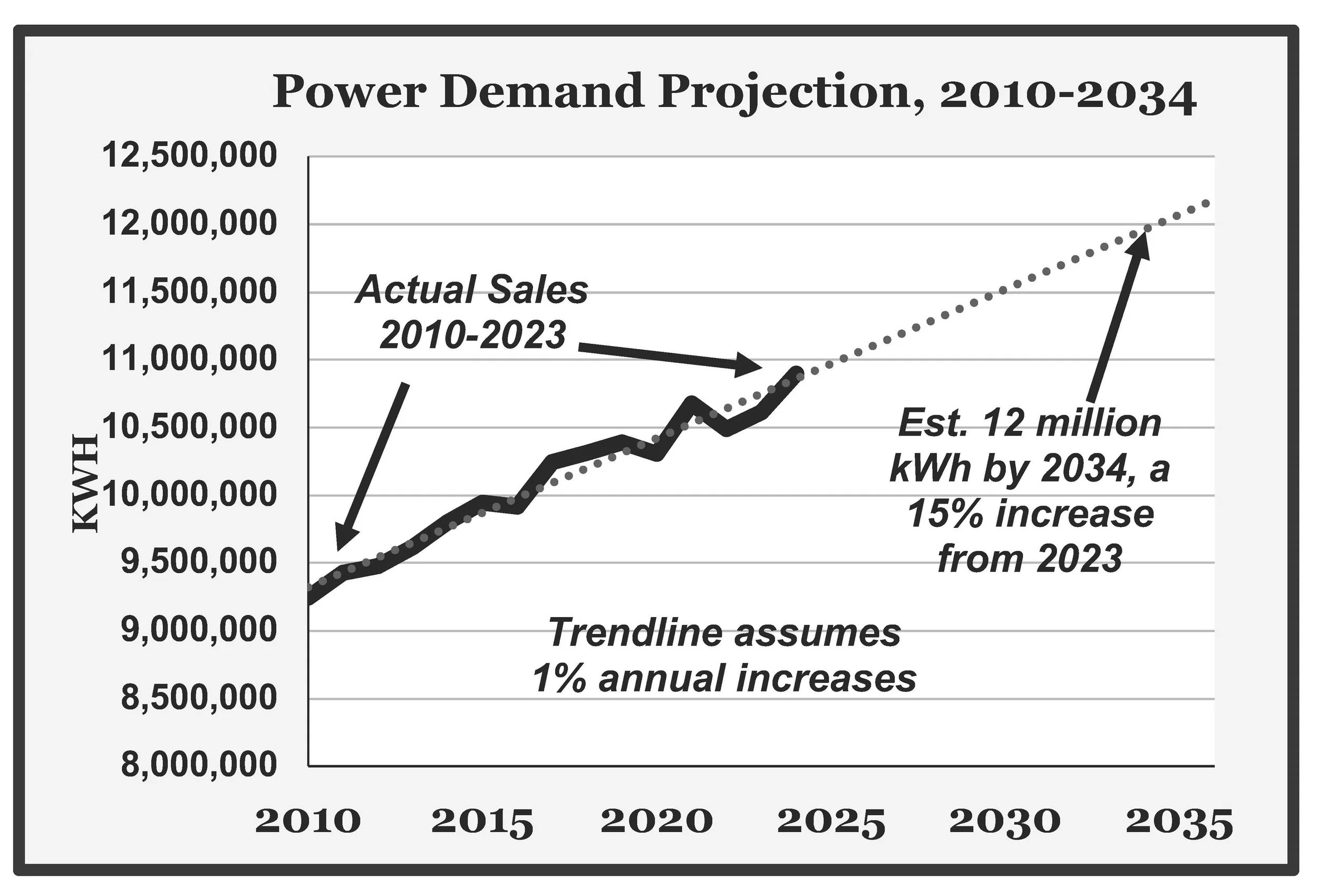 Our current annual power demand is about 10.5 million kwh, and we’ve seen about a 1% growth in demand each year since 2010, including new construction and recent heat pump installations.